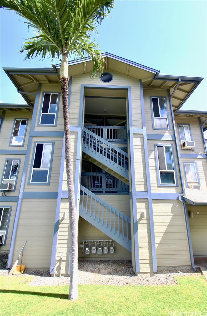 Located in rear of complex w/ no neighbors behind, this corner unit overlooks neighborhood park. As you enter the inviting living room, enjoy all stainless steel appliances. 1 master bedroom w/ full bath + 1 bedroom w/ bathroom across hall. Well maintained carpet and laminate floors throughout. window AC units and stacked Washer/dryer inside unit. Includes 2 parking- one covered, 1 open. 2 storage closets:1 closet on lanai and 1 closet in parking garage. Walking distance of Ewa Town Center, Geiger Park, and bus lines. Minutes away from Kapolei's open air shopping mall, Ka Makana Ali'i and UH West Oahu. Complex features a pool, BBQ area, and club house. No need for staging - This home is owner occupied so you can see the neat and spacious living conditions in natural everyday setting.