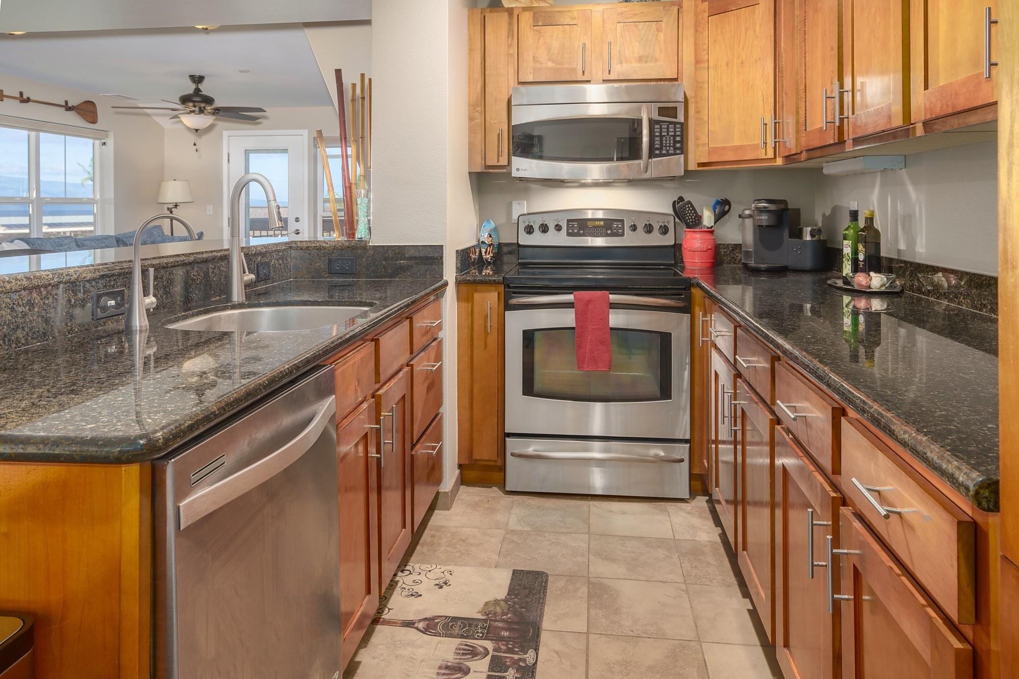 The very best of THE BREAKERS is now available for purchase! The Breakers D40 is a front-row, top-floor custom-crafted property offering ocean, island and West Maui Mountain views. D40 is a 2-level property consisting of 2-bedroom & 2-bathroom spread across 903 living sq. ft with an abundance of storage space. A 2023 renovation included the installation of Luxury Vinyl Plank flooring (LVP), custom paint throughout interiors, upgrade to the AC system, installation of storm doors, ceiling fans, television & kitchen sink water filtered bevy faucet. The property was fully furnished in 2023. 2-assigned covered tandem parking spaces are labeled 132 & 133. Located within walking distance of the Honokowai Beach Park & Farmers Market and Deli Beach Center, The Breakers is a condominium community consisting of one, two and three-bedroom properties. Built in 2008, the community amenities include pool, clubhouse, assigned parking and elevator access. The Breakers are zoned A2-Apartment. Long-term rentals are permitted (minimum of 6-month). The community is PET-FRIENDLY! Yeah! YOUR Time is Now.