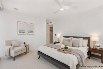 Discover this exceptional corner residence in the prestigious Rycroft Tower, part of one of the building’s most coveted collections of 19 units. This preferred corner residence captures stunning ocean and Diamond Head vistas through floor-to-ceiling windows that bathe the interior in natural light. The spacious layout extends seamlessly to a wraparound private lanai, creating an ideal setting for both relaxation and entertaining. Additional features include upgraded luxury vinyl plank flooring in both bedrooms, elegant quartz countertops, premium stainless steel appliances, and an in-unit washer and dryer. The primary bathroom is also equipped with a TOTO wash-let. Enjoy private access to a resort-inspired amenity deck with an infinity pool and spa, multiple BBQ pavilions, a movie theater, co-working and media spaces, and elegant party lounges. The fitness center offers a yoga room and sauna, while residents benefit from secured covered parking, 25+ EV charging stations, bike storage, and 24/7 security. Extraordinary modern island living is waiting for you! One or more photos have been enhanced.