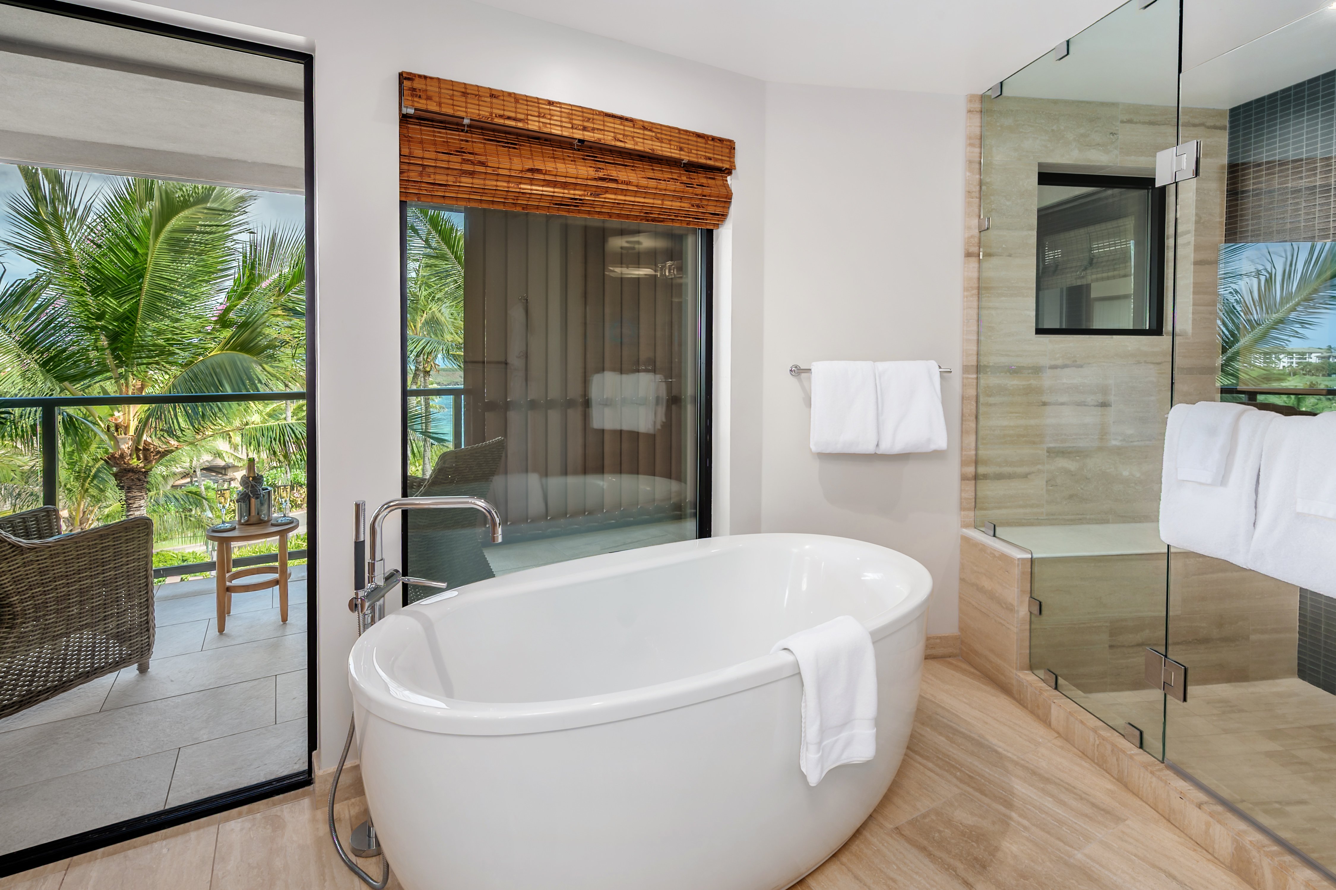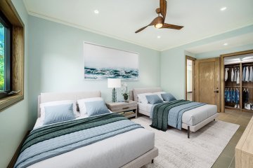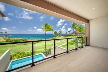 This gorgeous 3 bedroom/3.5 bath penthouse boasts beautiful Kauai sunrise views across the grotto pool to the Ninini Pt. lighthouse and Running Waters Bay from the four spacious lanais. The location of this home offers privacy and serenity and stunning views from every room of the tropical surroundings. Inside you’ll find an exceptional level of finish, with thoughtfully designed custom cabinetry, natural stone vanities and beautifully appointed kitchen that feature Thermador and Bosch appliances. The residence is beautifully furnished by Henderson House and is offered fully turn-key.