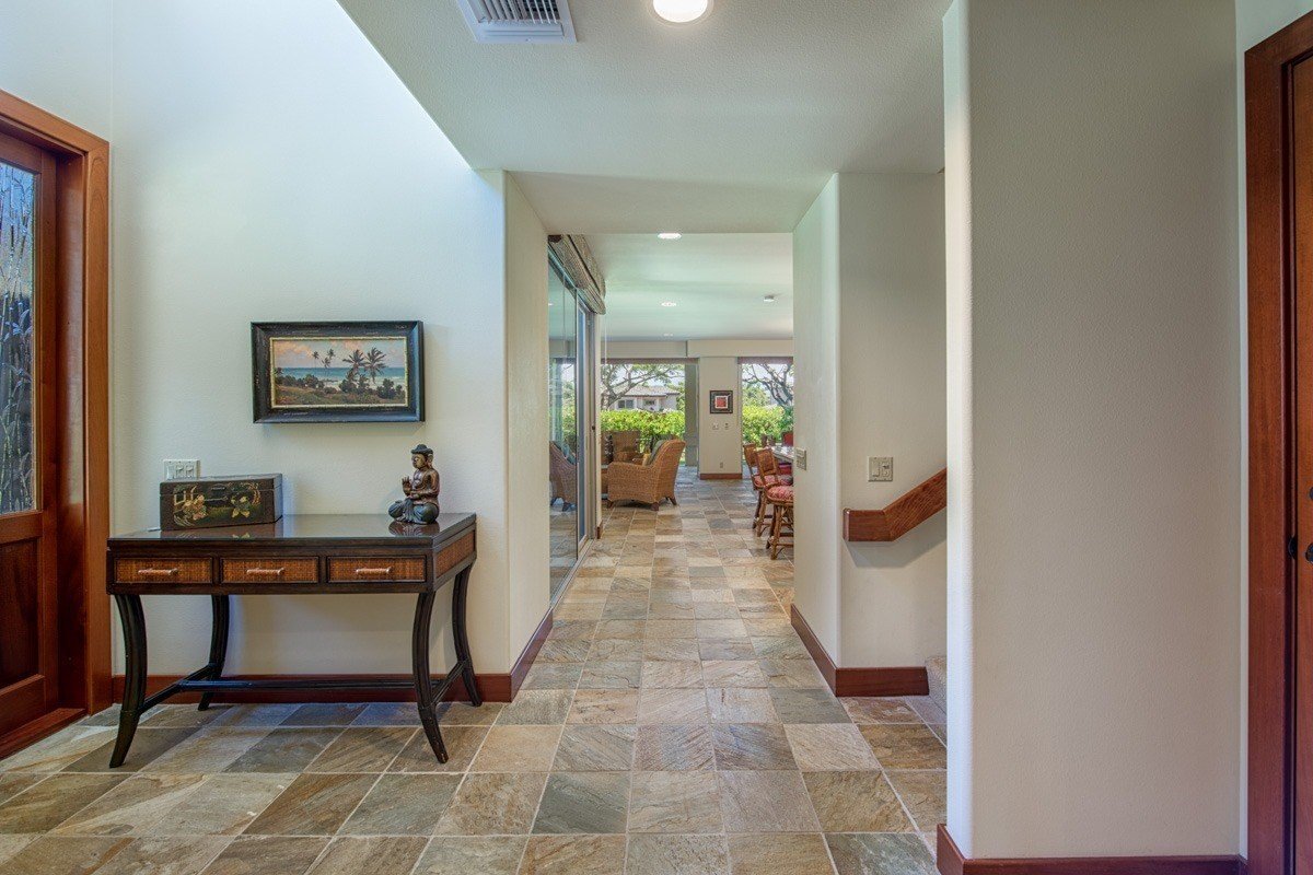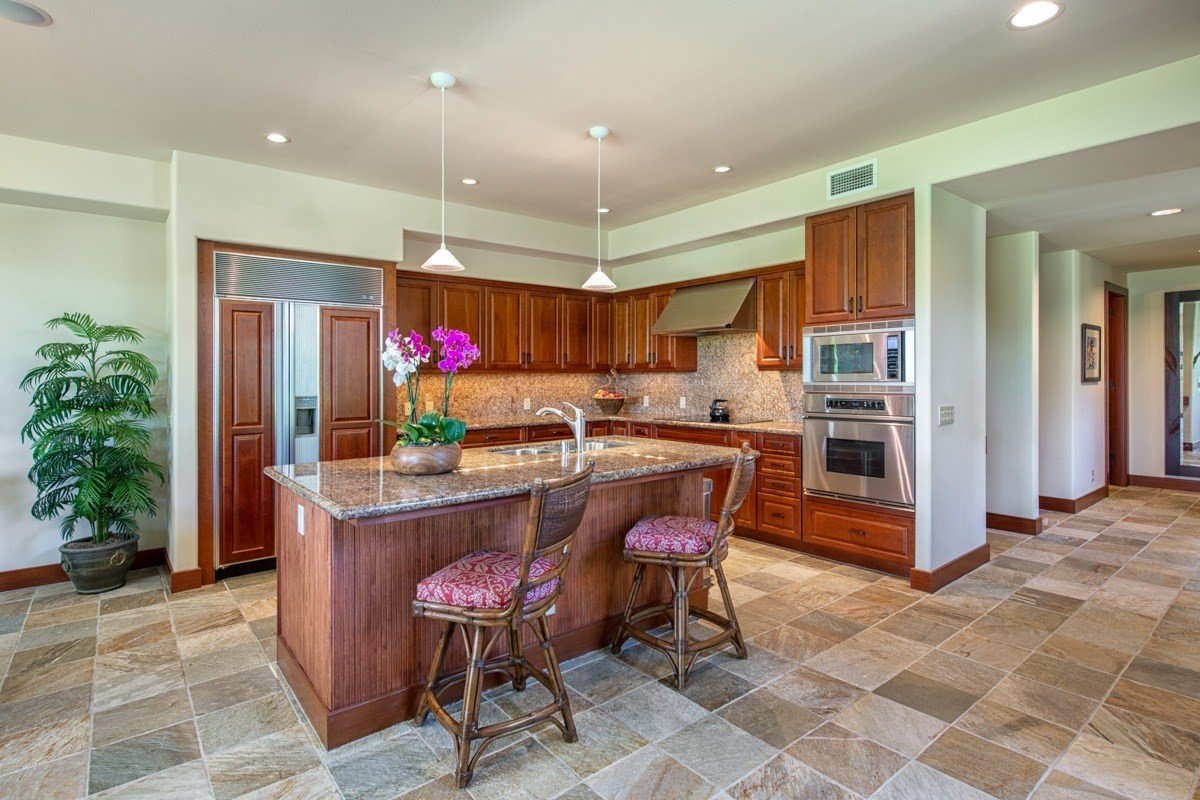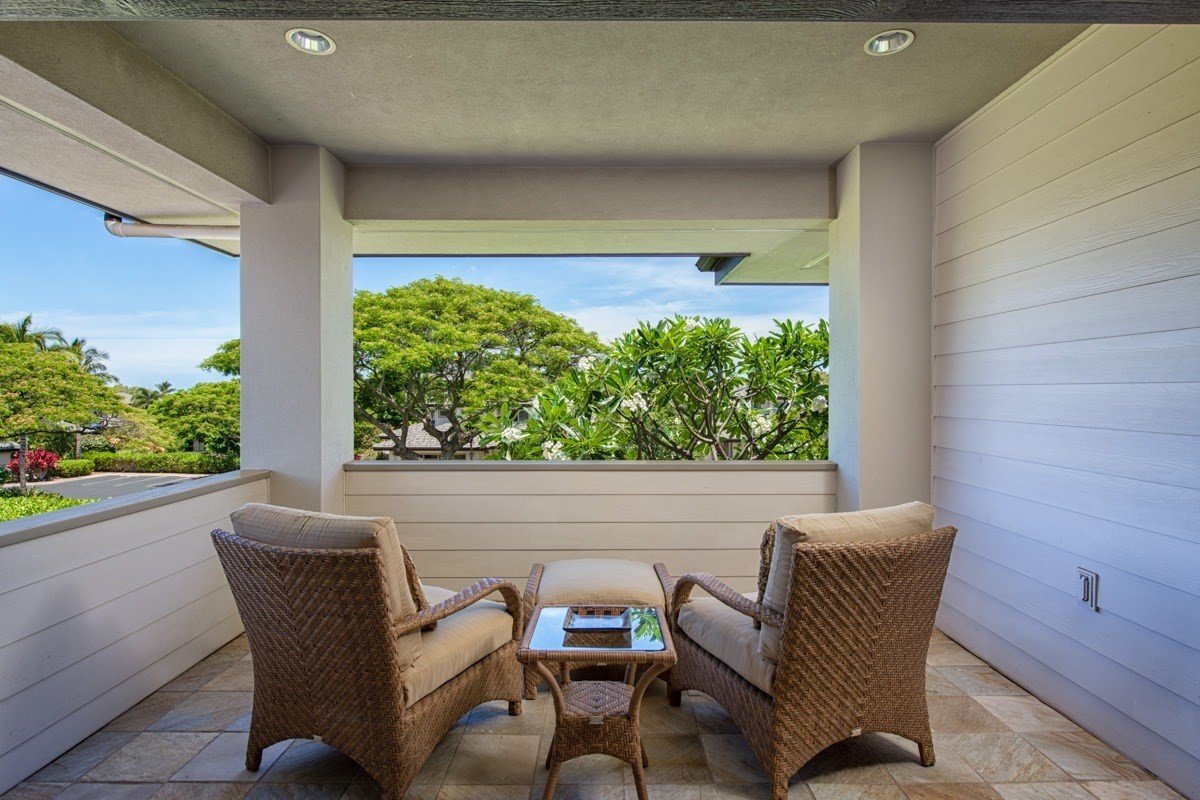 The Villages 213 : This Lehua townhome features three en-suite bedrooms with one bedroom downstairs and two upstairs. It has an open floor plan, a lovely courtyard patio off the kitchen, a large back lanai with an outdoor mini kitchen and gas BBQ, and a spacious balcony lanai upstairs off the master bedroom, both west facing and protected from the trade winds. This townhome is beautifully furnished with Tommy Bahama furniture throughout and the kitchen is very well equipped. The Villages homes are known for their quality construction and finishes including solid Mahogany doors, stone floors, granite countertops, high end appliances and a spacious 2 car garage, as well as 2 additional guest parking spaces in the driveway. This particular unit has upgrades such as matching mahogany wood panels for the refrigerator, a large built- in mahogany desk in the upstairs guest bedroom, and a 3 panel pocket sliding glass door in the master bedroom, as well as the standard 3 panel pocket sliding glass door in the living room. This unit is an easy walk to the Shops at Mauna Lani and the Villages amenities center, which includes a pool, spa, well equipped gym, kitchen and space for parties. The photovoltaic system, with 30 panels, has net -metering providing great savings on electric bills. A quality project built by Maryl and a favorite community within Mauna Lani Resort, renowned for its spaciousness and privacy. Excellent rental potential for the new owner as the Seller has a STVR permit.