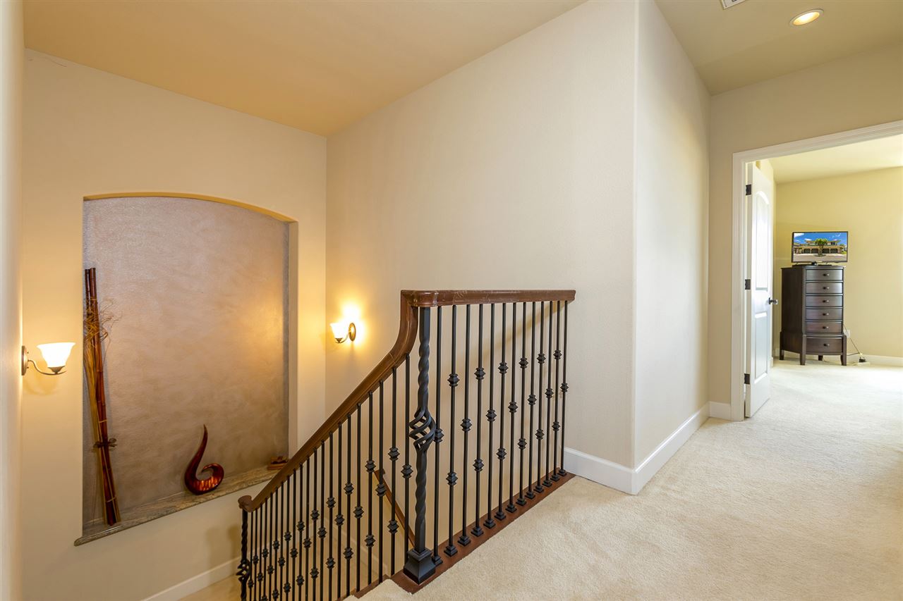 The Villas at Kehalani is Central Maui’s most revered & beautiful condominium project. Set high upon the eastern slope of the West Maui Mountains, the gated entry is lushly landscaped & the multi-colored stucco buildings with Monier tiled roofs exude a feeling of quality & architectural integrity. Unit 1504 is a South & East facing end-unit & enjoys lots of light due to the windows on all three sides! The endless ocean, N. Shore Coastal & Haleakala views are riveting. This spacious 1724 s.f. 3 bedroom, 2.5 bath, open floor plan lives large. There is a dedicated dining area adjacent to center island kitchen where guests may be part of the creative culinary efforts! Granite counters & the custom stone-tiled back-splash are juxtaposed with contemporary stainless steel appliances. Lovely wood cabinetry affords lots of storage & there is a built-in art-niche in the main living area. The 177 s.f. tiled, ocean & mountain view, covered lanai provides an outdoor dining opportunity. The master suite is generous in size & opens into the view oriented en-suite bath with dual marble vanities, soaking tub, & glass enclosed shower. Two additional, mountain view, bedrooms, laundry room & a full bath share the upper level. There is central air conditioning & a large two car garage. For one’s convenience, the Kehalani Master Plan includes a shopping center, grocery store, banks, & gas station. The County of Maui, State, & Federal offices, restaurants, theaters, Maui Memorial Hospital, U.H. Maui College & Ka'ahumanu Shopping Center, plus golf, tennis, beaches & Kahului Airport are all close by! This unit is in excellent condition & is a Must Experience.