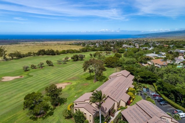 Spacious and furnished two bedroom / two bath condo is located in desirable Building A, right along the Waikoloa Village Golf Club Course with expansive ocean and sunset views! For outdoor island living and entertaining, the single level unit features a large tiled lanai with wet-bar and extra storage. Tastefully furnished with tropical decor, this beautiful condominium home is ready for you to enjoy! Updated flooring includes ceramic tile in entry, kitchen, and baths, and brand new luxury plank vinyl in living room and bedrooms. Both bedrooms are very spacious. Master Bedroom opens to the lanai and is en-suite with a separate make-up vanity. Guest bathroom shower was remodeled with updated tiled shower floor and surround. Stacked washer/dryer is brand new! Lots of storage available throughout. Residents at Waikoloa Villas enjoy mature landscaped grounds, and 2 pool areas each with spa and gas barbecue. Nearby Waikoloa Highlands Shopping Center offers restaurants and a new food court, grocery and specialty shops, banking and other services. Waikoloa Villas owners are required to join the Waikoloa Village Association and they receive discounted golf and use of the community pool and tennis courts.