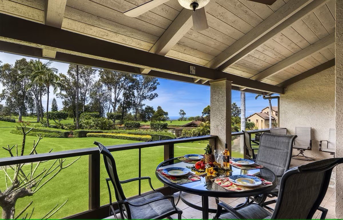 The dining room has a hanging opaque glass light over a round glass dining table where you can dine, play cards or games, or just use it for puzzles as you will most likely be eating outside on the lanai. The living room has a vaulted ceiling, high volume ceiling fan, floor to ceiling windows to view the great outdoors, and large sliding glass door to the lanai. Enjoy your time on the expansive lanai with a wet bar, wine fridge, games to play and view of the Pacific.