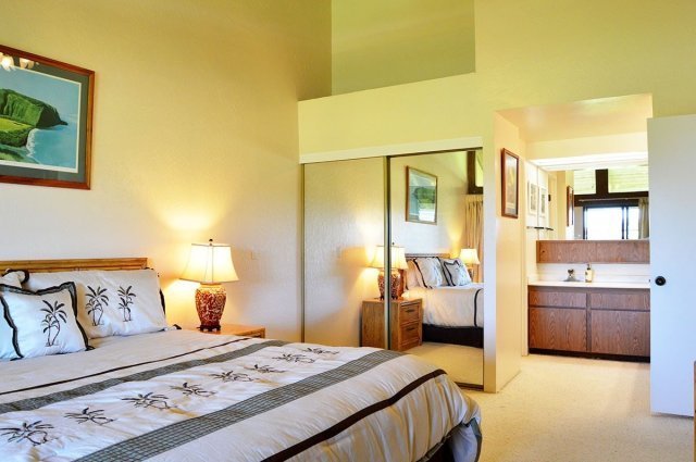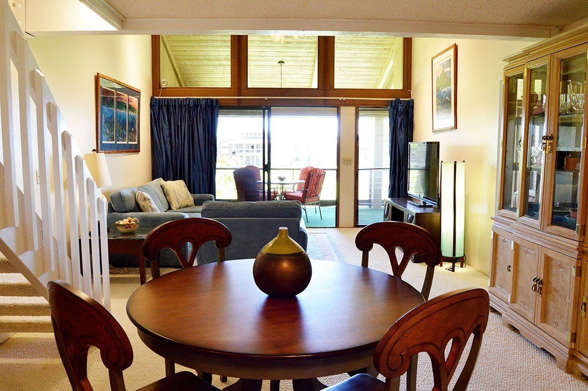 Located on the 9th fairway of Waikoloa Village Golf Club, this 3-bedroom, 3-bathroom condominium offers amazing views of the Big Island coastline with its ocean and sunset views. This is a multi-story walk up. There are 2 bedrooms/2 baths on the main level and 1 bedroom/1 bath on the loft level. The loft is also perfect for a home office or a quiet reading room. And there's plenty of room for your belongings, including a large storage room.