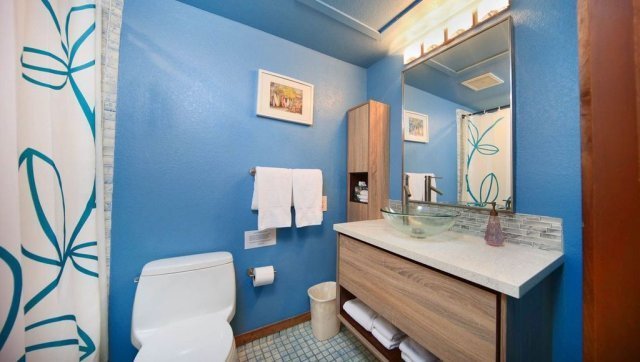 As you enter this unit you treated to the sights and sounds of Kauai at its best. Sun, Sea, and Sand colors along with the beautiful natural backdrop that awaits just off the lanai area.