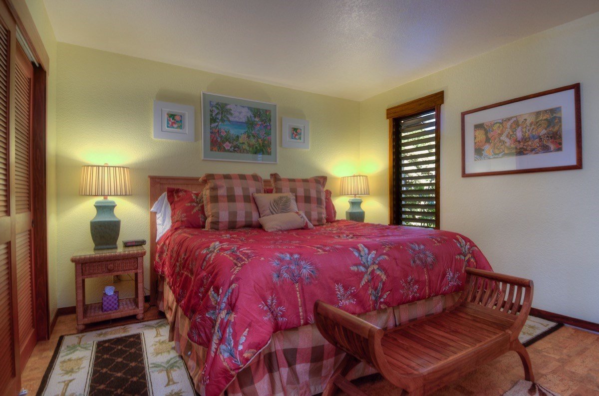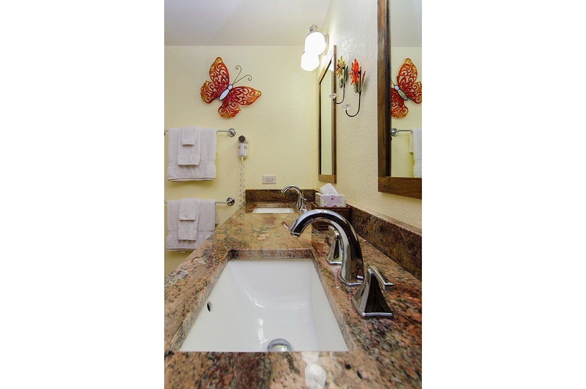 This unit has been completely renovated & new quality furnishings installed to provide the owners’ a second home, it's conveniently located within the resort and is one of the best buys in the Poipu Beach area. This oversized 1 bedroom 1 bath condominium has 996 sq. ft. of living space. The end unit location means extra louvered windows on the side wall (instead of a neighbor) to maximize airflow, light and privacy. The unit is situated on the second floor, with a semi-private staircase, and is close (but not too close!) to the on-site pool and parking lot. Currently, the unit is utilized as a vacation rental but with the spacious interiors it could easily be your full-time residence. Waikomo Streams Villas is located in Poipu Beach which is known for its sunny weather and is within walking distance to Baby Beach and the “Great Wall” where you can take in picture postcard sunsets. Additionally, you can easily walk to the new Kukui’ula Shopping Center where you have a multitude of dining and shopping options. The owners’ meticulous attention to detail in the renovation of this unit are above and beyond what you would normally expect to find. Some of these features are: Cork and Travertine floors throughout the inside Refinished terracotta tile lanai floor Bright ambient lighting Naturesoft soft water system Large wall mounted flat screen TV in living room Twenty-four bottle wine Cooler VCR & DVD player with a large selection of both tapes and disks Full 1 1/4 inch thick granite counter tops in kitchen & bath Ample sized owner’s storage closet with a large utility sink Kitchen cabinetry with pullouts and self-closing drawers/cabinets Whirlpool side-by-side refrigerator Jenn-Air range with a grill cook top Toaster Keurig coffee maker Travertine tiled walk-in showerKeurig coffee maker Travertine tiled walk-in shower Frameless sliding glass shower doors Three product wall mounted dispenser in shower