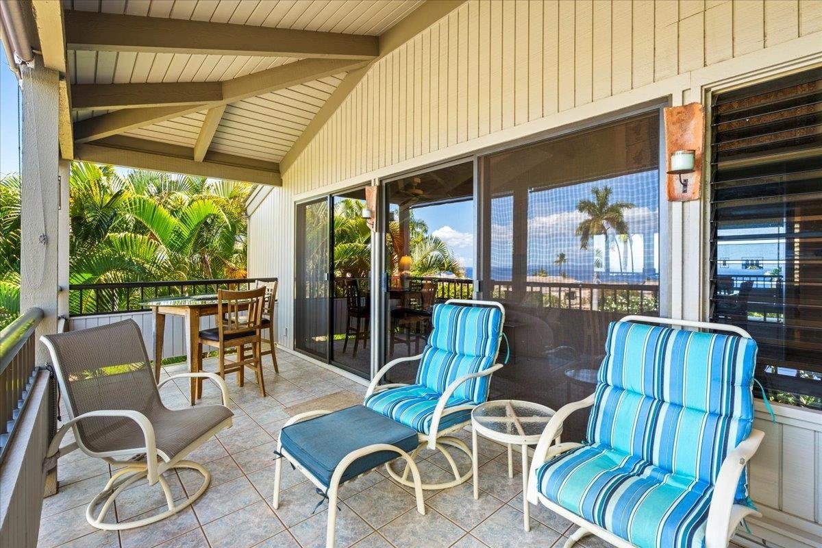 Wailea Ekolu #1008 offers the pinnacle of Wailea living—an immaculate upstairs 2-bedroom, 2-bathroom condo with panoramic ocean views. This spacious, end-unit residence features vaulted ceilings and comes fully furnished and turnkey, allowing for effortless enjoyment or immediate vacation rental income. Inside, stay comfortable year-round with split AC units in the primary suite and living area, plus an additional unit in the second bedroom. The open-concept layout flows seamlessly to a private lanai where you'll take in sweeping views of the Pacific and outer islands—perfect for morning coffee or sunset cocktails. Located in the heart of Wailea Resort, you’re moments from world-renowned beaches, fine dining, the Shops at Wailea, and just steps from the Wailea Blue Golf Course clubhouse. As a unique bonus, a Honda Fit is included in the sale, making island living even more convenient. Vacation rentable and impeccably maintained, Wailea Ekolu #1008 is an exceptional opportunity for both investment and lifestyle.
