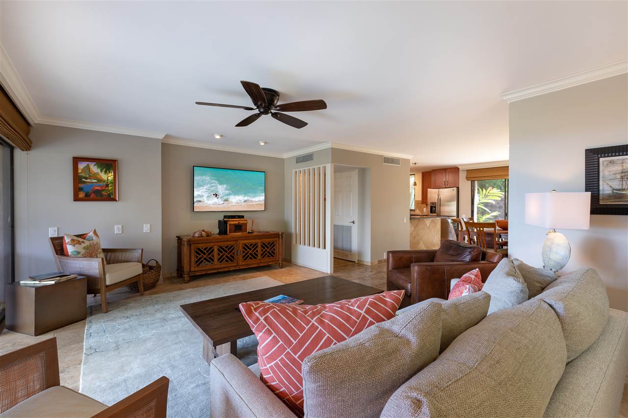 Enjoy beautiful ocean and sunset views from the living area, the master bedroom, and the expansive lanai that runs along the entire front of this spacious 2 bedroom, 2 bath Wailea Elua unit, which also comes with an over-sized garage that offers plenty of room for a car and tremendous additional space for storage! Past upgrades include the kitchen, both bathrooms, the flooring, smooth ceilings, and more. There is also another large lanai off the dining area, offering a tropical feel and plenty of space for barbecuing, dining, or just enjoying the evening. Wailea Elua overlooks Ulua Beach (one of the most beautiful beaches on Maui), which offers some of the best snorkeling around, and is on the famed Wailea Beach walk, which provides easy scenic access to the other world-class resorts, dining, shopping, and the other activities that Wailea has to offer. Wailea Elua also offers two private swimming pools (one with a hot tub), a beautiful pool pavilion, an exercise facility, 24-hour security, and gated access. Contact your favorite Realtor to schedule a showing!