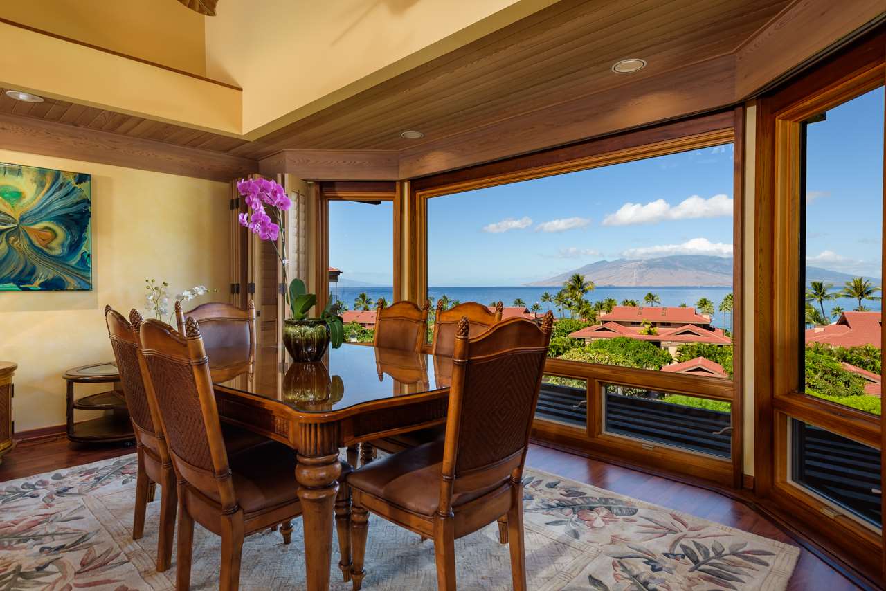 Wailea Point is prominently positioned upon the 28 ‘Premier Oceanfront' Acres in World Class Wailea Resort, next door to The Four Seasons. It offers guard gated & 24 hour roving security. Wailea Point #2302 is a ‘Superb View Oriented Residence’ within this low density, revered, lush tropical paradise. You will be mesmerized by the unobstructed 'Panoramic Ocean Views' encompassing the South Maui Coastline, W. Maui Mountains, Island of Lanai & the ‘not to be missed’ verdant green hills of Ulupalakua on Haleakala’s S.W. flank. This meticulously maintained 3 bedroom, 2 bath unit 'lives large' at 1839 sf & includes a lofted third bedroom plus closet area. There are vaulted clear cedar ceilings & perimeter soffits with recessed art lighting. A marble-tiled entry area, book-matched Hawaiian Koa doors & a custom spiral staircase add a feeling of warmth & elegance. Numerous skylights & clear-story windows fill the interior with tropical light. The spacious master bedroom offers two en-suite private bathrooms & garden views from its dedicated lanai. A guest bedroom with its finely upgraded en-suite bath/powder room features specimen granite, cast glass palm-motife shower doors & wall tiles. The 339 s.f. wrap-around lanai offers alfresco dining, a BBQ, & motorized privacy / sunshades. The glass on glass corner kitchen window affords inspiring views & culinary creativity. Second to none on Maui are the two on-site recreation pavilions; one is family oriented & includes a lap pool, kiddy pool & state of the art gym, while the other is the 'quiet' pool area. Experience ‘The Best’ Maui has to offer as you drive your golf cart or stroll through these 28 pastoral acres with direct access to two of Maui’s finest beaches, the adjacent oceanfront 'Wailea Walk', fine dining & shopping at The Shops of Wailea and the Spas of Maui's finest resorts. World class golf is just across the street & tennis courts are onsite. Be sure to view our Video & 3 D Tour.