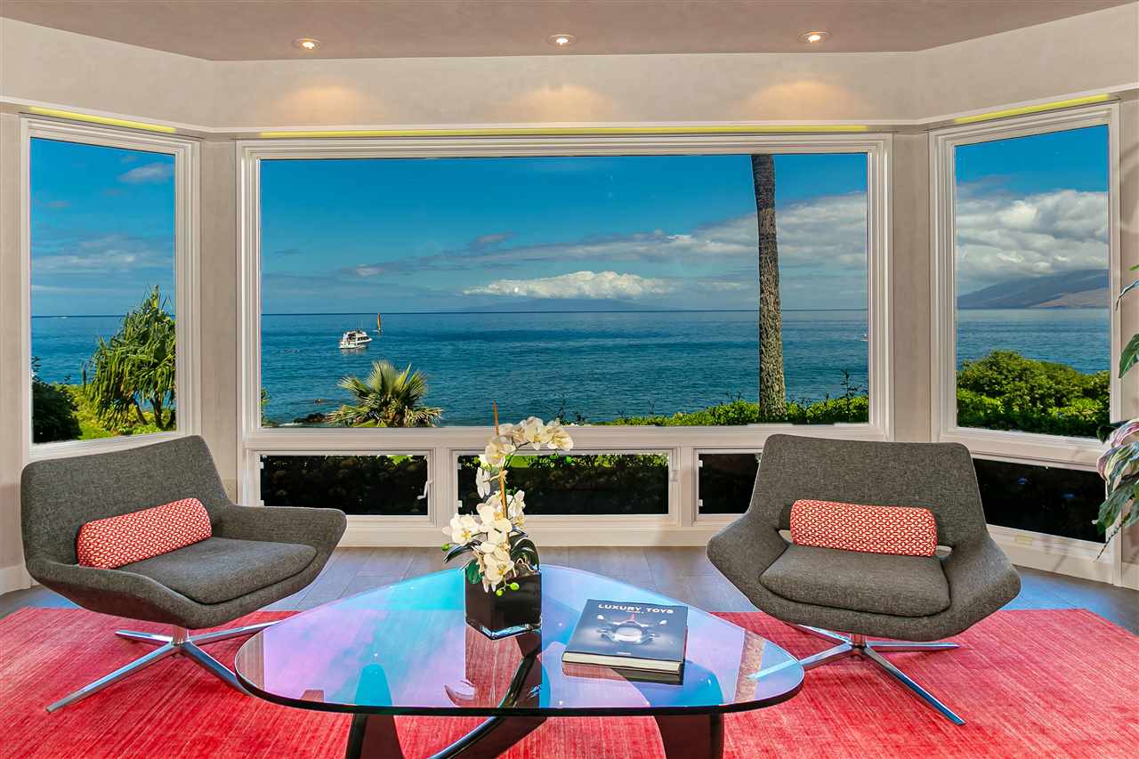 This absolutely stunning ground level "C" floor plan was totally renovated by builder Shawn Conners. The result is perhaps the most exquisite interior in world renowned Wailea Point. A number of cutting edge design concepts were employed, creating an incredibly beautiful and EXPANSIVE living space. The enormous "great room" includes entry foyer, dining area converted to media center, living room, entertainment room, and kitchen - everything from the front door to the bay windows, all state of the art. The changing weather, the ocean currents, boating & water sport activities, the pedestrians on the oceanfront path that sits well below the home - all provide occupants with an ongoing drama of change and beauty. This is the largest single-level floor plan in Wailea Point (except double units). Unsurpassed, world-class, west-facing ocean and neighbor island views, set back just 75 feet from the shoreline and sitting 26 feet above sea level. Just steps to the ocean and beach, and to the many fine restaurants and other amenities of the incomparable Wailea Resort. Sale includes garage apartment 303-G. There is a window replacement program currently underway at Wailea Point; ask for details. Wailea Point may be the most private and peaceful of any condominium environment. There are both gated and roving, round-the-clock security patrols. The very design of the property - with just over 4 units per acre - ensures peaceful privacy and tranquility for every residence. The exceptionally maintained property has 2 pavilions for entertaining, 4 swimming pools - including a 25-meter lap pool, hot tubs, an excellent fitness room, and tennis, pickleball, and paddle tennis courts. Edible landscaping includes avocados, oranges, tangerines, limes, pomelos, papaya, breadfruit, bananas, and an extensive herb garden. Wailea Point encompasses nearly 30 acres of beautifully manicured grounds - including the famed Bud Wagner Memorial Native Hawaiian garden. There is perhaps no finer place in the world to take a stroll - or a casual golf car ride.