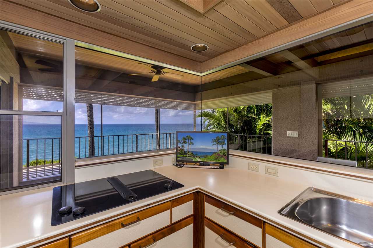 Stunning, direct oceanfront residence facing southwest toward Molokini Island, just 75 feet from the shoreline. Lots of sun & protected from the trades. Upstairs unit sits comfortably above the oceanfront path. Magical location amongst Wailea Point's gorgeously maintained gardens. Located in highly desired Phase I near the "quiet" pool area; a short walk to the Four Seasons and Grand Wailea resorts. Vintage, furnished interior is well cared for, attractive and inviting. The vast, 24-foot-high ceiling makes the unit feel extra spacious, and can easily accommodate a loft addition. Includes generous sized, deeded, private garage. Enjoy the incomparable quality & serenity of Wailea Point, Hawaii's finest condominium. Extensive amenities include gated-entry, roving 24-hour security patrol, two elaborate pool pavilions with full kitchens, 4 swimming pools - one a 25-meter lap pool, 2 whirlpool spas, tennis, paddle tennis & pickleball, modern, well-equipped fitness gym, barbeque areas, lots of edible landscaping and more. Wailea Point is a beautiful, quiet, low density, high quality golf-cart friendly environment that is unmatched in Hawaii. Enjoy the luxury of Four Seasons and Fairmont Kea Lani Hotels as immediate neighbors and all the 5-star lifestyle they offer. Well-run AOAO.