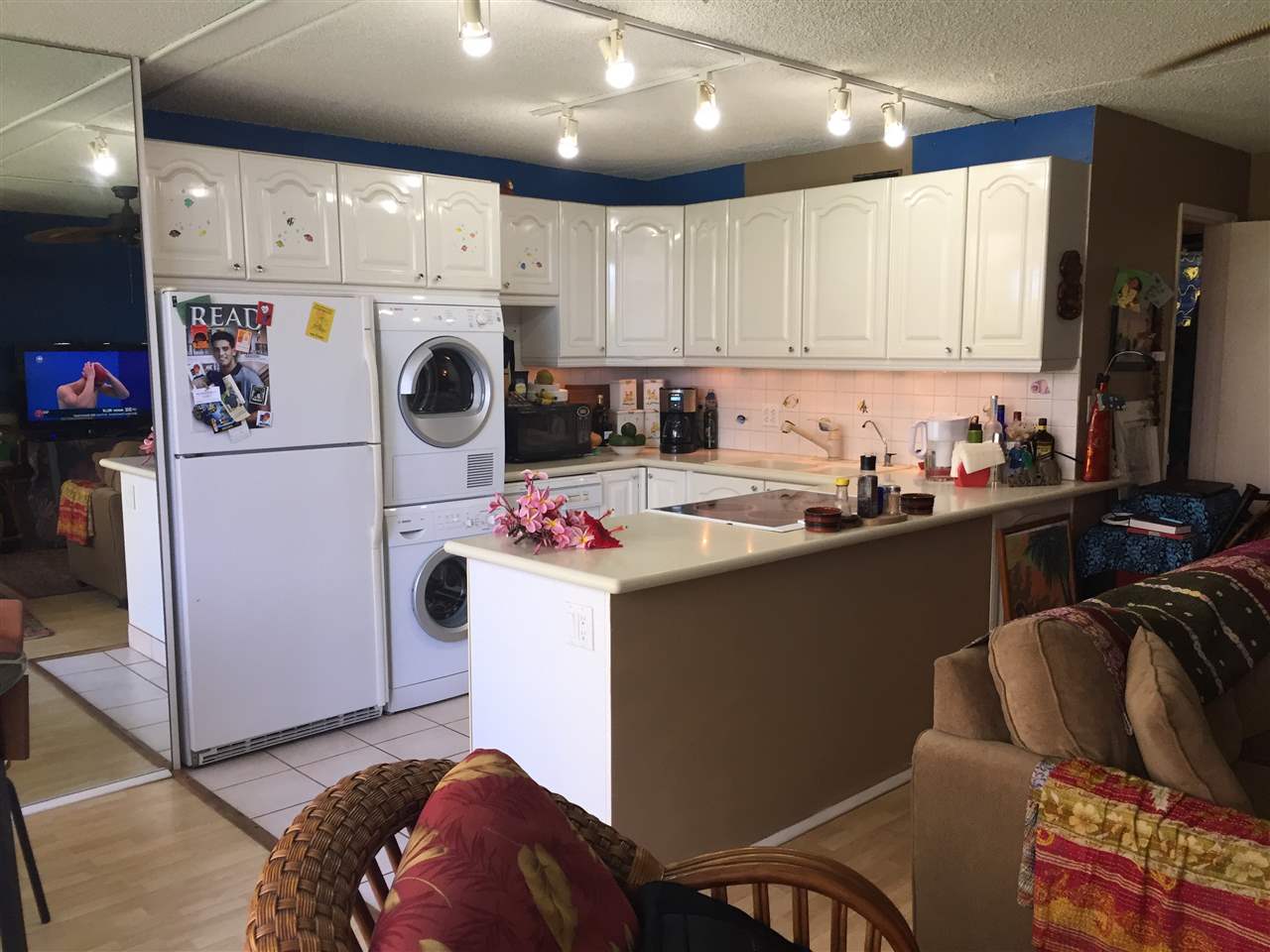 Welcome home to this one-bed one-bath 680 SF ground floor condominium at the oceanfront boutique Waipuilani Complex in Central Kihei! Enjoy the quiet location and garden views from this unit, far from South Kihei Road. A bright and colorful space to call home or use as a 30-day minimum rental. Open floor plan of kitchen, dining area and living room gives the feeling of spaciousness. Tile flooring in kitchen, bath and entry. Laminate flooring elsewhere. Nicely appointed. Sold furnished. Appliances in good condition. Three year old Bosch washer/dryer in unit and community laundry is also available. Window AC in bedroom. Ceiling fans in living room and bedroom. New water heater 2015. Extra storage outside the unit. Gated in- ground pool and BBQ area. Parking stall #15. One minute walk to the most amazing kite surfing beaches with large greenbelt walkway along the ocean, public tennis and volley ball courts. Close to many restaurants and shopping. Tax record does not match property SF because years ago the ground floor units enclosed their large lanai.