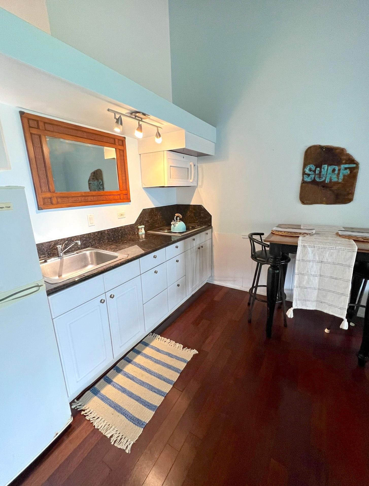 New Look for this Kepuhi Beach Resort upstairs studio on the Island of Molokai! Have you been searching for a fee simple, vacation rentable condo, with partial ocean views, fully furnished in Hawaii? Consider this corner studio with new decor, light blue walls, good vibes, high ceilings, and ready to go in West Molokai Resort (now known as Kepuhi Beach Resort). This studio has a murphy bed and extra louvered windows on the N side to capture the trade wind breezes. Imagine spending the day on the empty white sand beaches out front looking for shells, making sand castles, fishing, swimming or in the winter months, surfing. Rinse off in the ocean view pool and stroll back to your studio to unwind and sip a margarita on your covered lanai overlooking green gardens and palm trees with views of the white sandy Kepuhi Beach and the iconic Kaiaka rock. Or take your steak down to the community BBQ area where you might meet up with a couple of fellow travelers who will be glad to talk story. Take the scenic 8-seater prop plane from Honolulu or Maui, passing by the stunning 4,000 ft high Molokai cliffs, considered the tallest in the world. Then get ready to unplug because on this island, things are really laid back. No traffic lights. No crowds. Be ready to prepare dinner in your fully equipped kitchen with granite counter tops, play a game of cards and get ready for a peaceful night of sleep. In the morning, stroll down to the beach and stop by the sundry store on your way for a cold POG. Markets, stores and airport 15 minutes away. Internet access available in the area, but don’t tell anyone, and just unplug for a few days. Sold fully furnished. Check out the walkthrough video posted on the MLS.