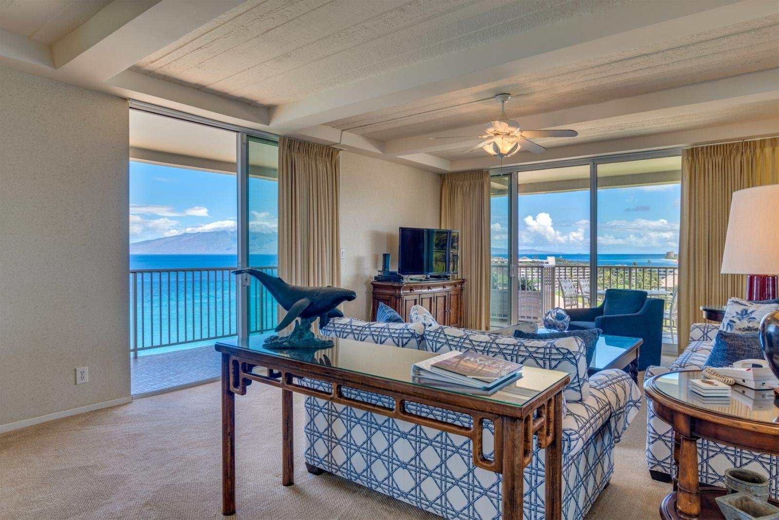 PINNACLE OF PARADISE: Located in the heart of Kaanapali Beach Resort, The Whaler is the crown jewel and premier property for ownership and for visitors from all over the world. Enjoy expansive 240° views of Black Rock to the West Maui Mountains from this oceanfront corner with wrap-around lanai. Sip your morning coffee with Molokai as your backdrop to whales leaping in Maui?s crystal blue waters. End your day as the cliff diver leaps off Black Rock and plunges into the Pacific with the setting sun. With a commanding view from the 11th floor, Whaler 1102 offers views and amenities unlike most properties on the market today. As a hotel-zoned resort, The Whaler is a popular vacation rental resort and should remain so. Whaler 1102 has been in the same rental program for over 20 years. It has a loyal following, a favorable rental history and reservations on the books for immediate income. The spacious 2D/2BA floorplan offers 1,444 sq. ft of living space. When combined with the 510 sq. ft wraparound lanai, you have plenty of room to share your island paradise with those you love. Prepare meals in the large galley kitchen to eat at the ocean front dining table. The primary bedroom has an en-suite bath and you can watch sunset from your king-size bed. The guest bedroom has 2 twins beds for flexible sleeping arrangements. It is conveniently equipped with a washer/dryer. The Whaler is walking distance to Whaler’s Village. Dine at some of Maui’s favorite restaurants along the beach promenade. Play golf at the two golf courses across the street, or set sail aboard a catamaran from the beach just steps from your door. Enjoy the twinkle of resort nights from your lanai each evening as you listen to the waves and the drumbeats in the distance add to the Hawaiiana atmosphere. The manicured property is well-maintained with freshly mowed grass, flowering trees, a footbridge over a koi pond, and a soothing water feature in the courtyard. Stay active at the oceanside pool, fitness center, tennis and pickleball courts. Cook out at the BBQs and eat beside the ocean-view fire pit. All of these amenities combined with a 24-hour front desk, you - and your guests - will want for nothing at The Whaler on Kaanapali Beach.