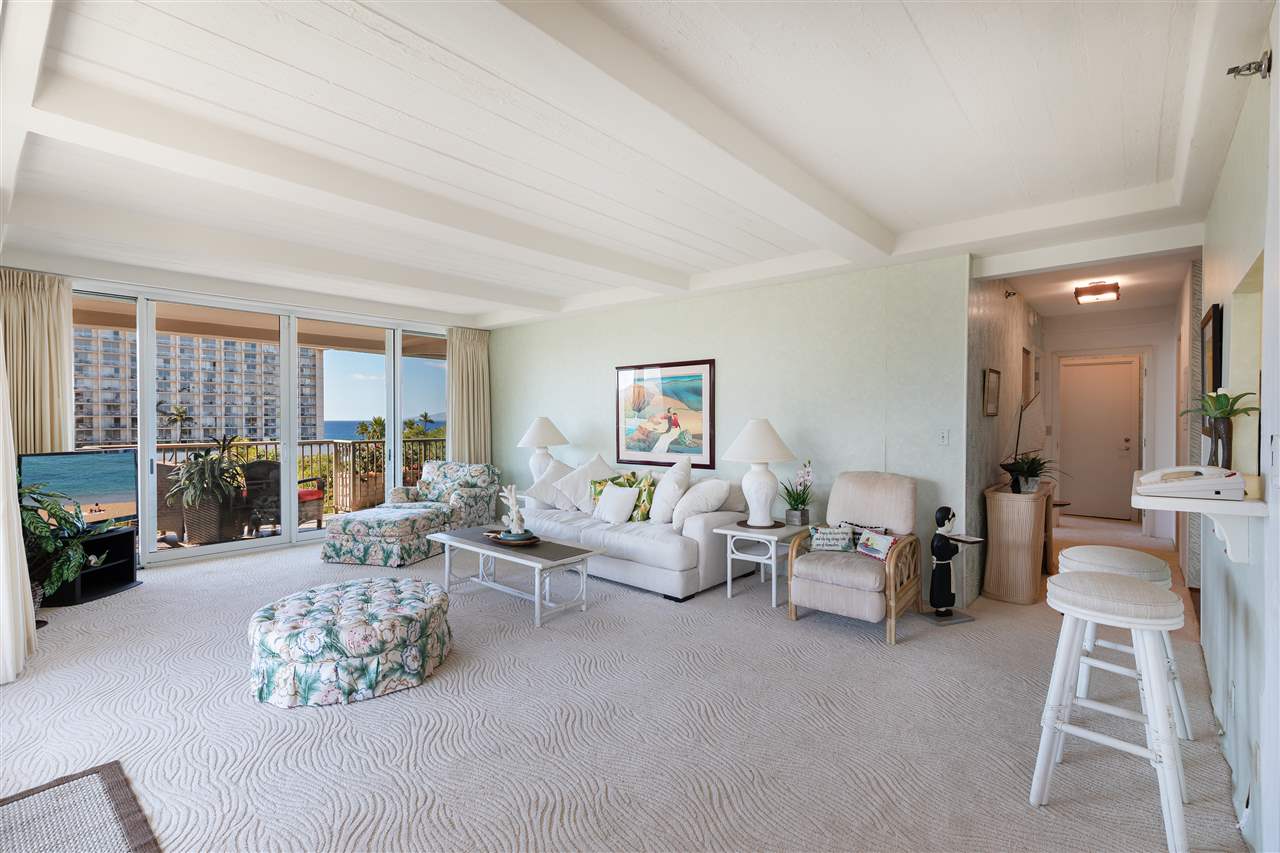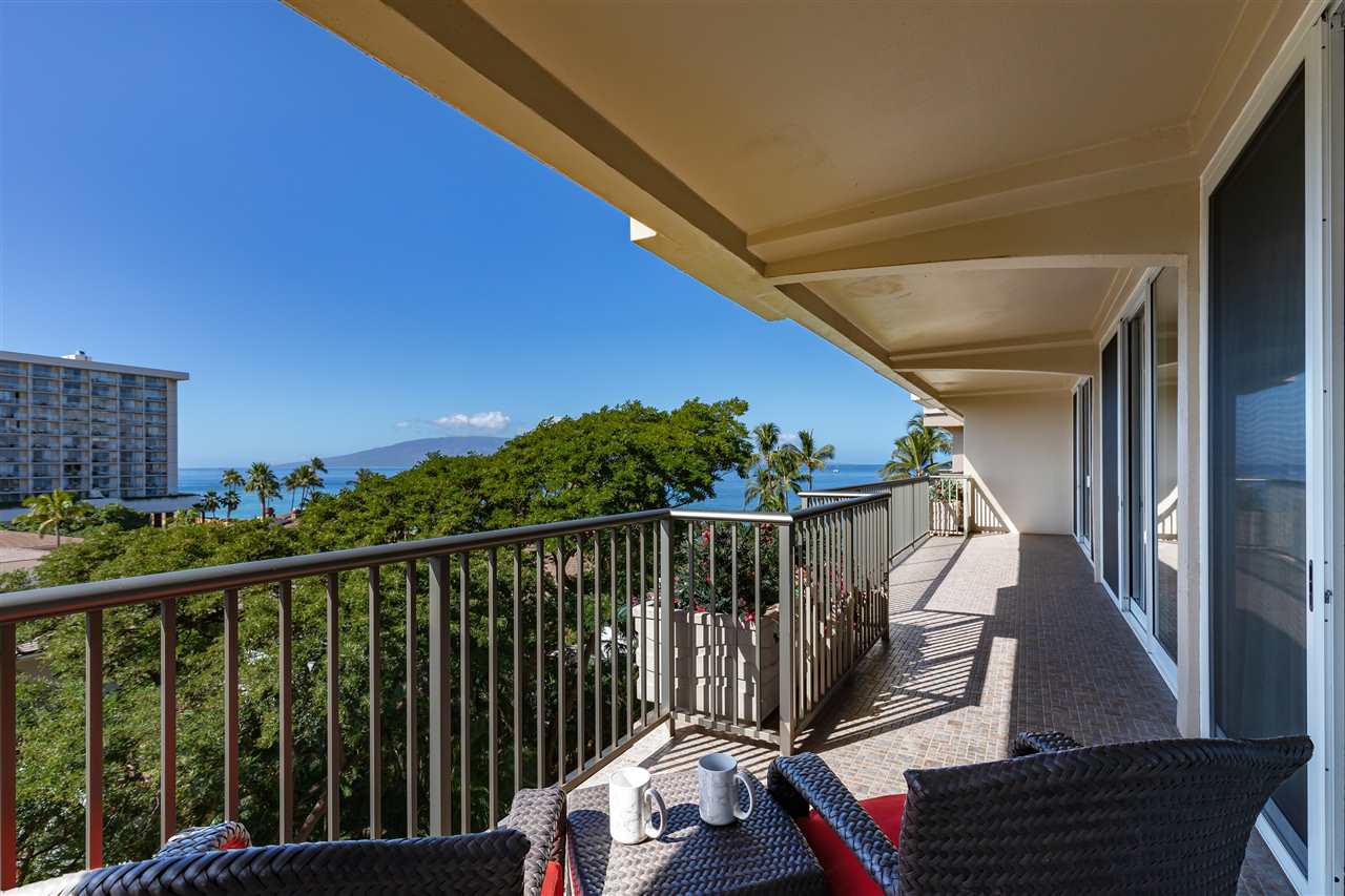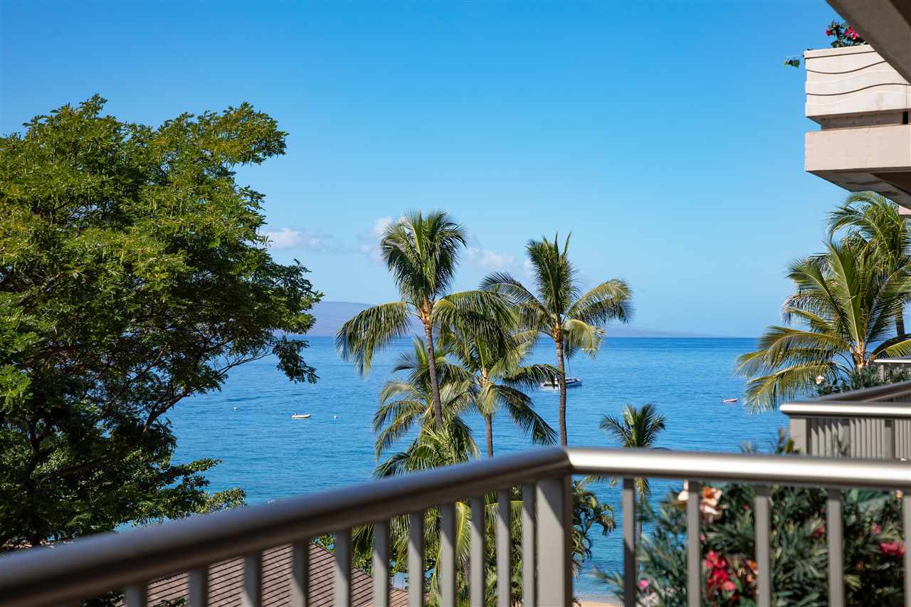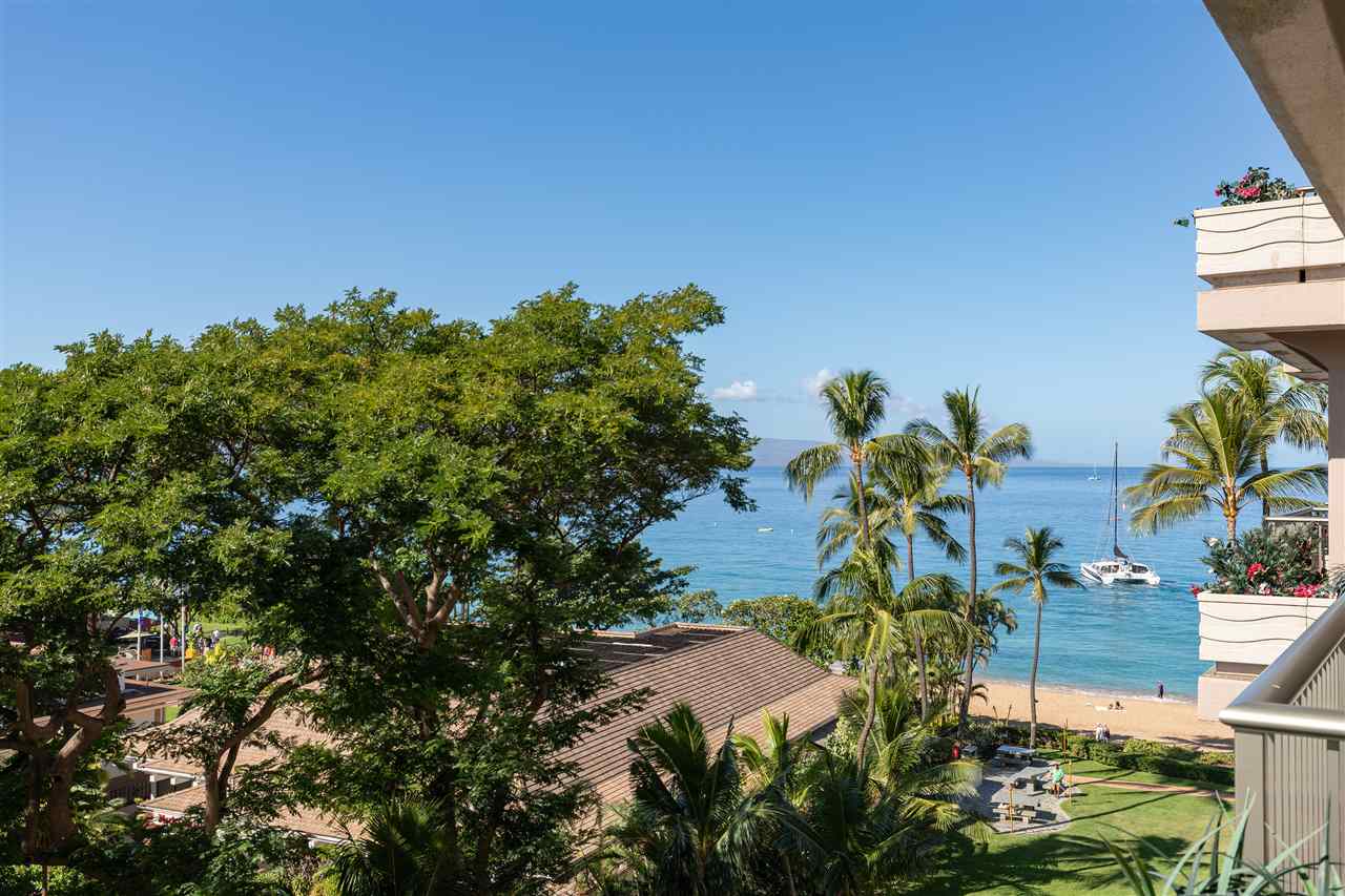 The 2 towers inside this gated community are both beachfront, less than 40 feet from Kaanapali Beach.