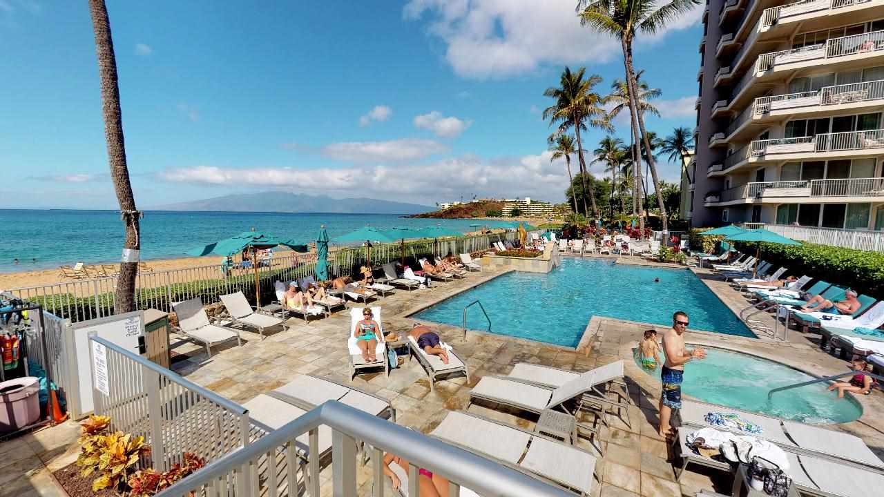 The 2 towers inside this gated community are both beachfront, less than 40 feet from Kaanapali Beach.